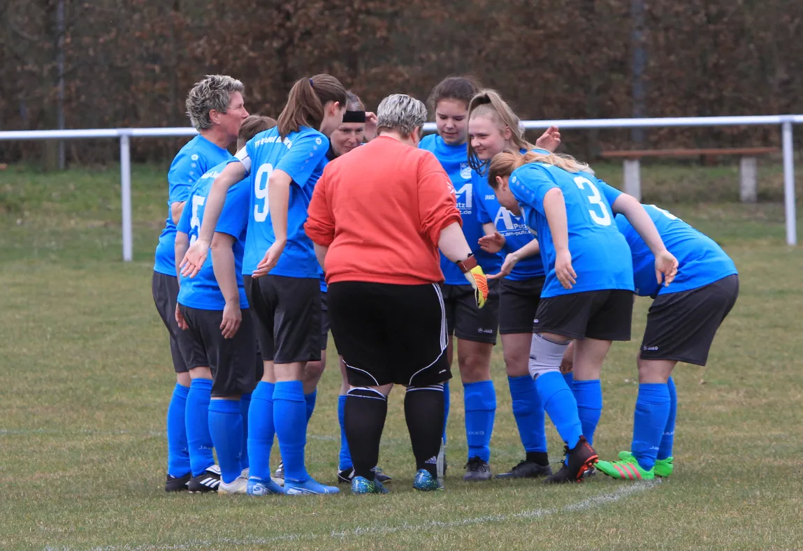 Auf Grund der Verletzung mussten wir in der Halbzeit umstellen und ab sofort hütete Gabi unser Tor. Und für die zweite Halbzeit hatten wir uns vorgenommen, alles zu versuchen, um das Ergebnis noch zu unseren Gunsten zu drehen. Unter den Gegebenheiten spielen Tabellenränge keine Rolle, es zählte nur der absolute Wille und kämpfen bis zum Umfallen. Und dies tat auch das gesamte Team im zweiten Durchgang. Hinten ließ man nur eine Chance für Frohndorf zu, welche aber sicher durch Gabi geklärt werden konnte. Es gab für alle nur eine Richtung, nach vorne. Jeder brachte sich ins Angriffspiel ein und so erspielten wir uns weitere zahlreiche Chancen. Frohndorf kam kaum noch aus der eigenen Hälfte. Jedoch mussten wir bis zur 76. Spielminute zittern, ehe sich Luisa energisch im Strafraum durchsetzte und völlig verdient ins lange Eck einschob. Doch das sollte noch nicht der Schlußstrich unter dieser Partie sein. In der Nachspielzeit kam die große Stunde unserer ältesten Spielerin Franzi. Einen Fernschuß von Trainerin Jeannine konnte die Torfrau nur mit Mühe abprallen lassen und Franzi stand goldrichtig und schob zum hochverdienten 2:1 Führungstreffer ein. Abgerechnet wird nun mal zum Schlusspfiff und unser absoluter Sieges- und Kampfeswille hat uns doch glücklich mit 3 Punkten nach Hause fahren lassen, trotz aller Umstände. Und auch der Gegner hat es uns heute nicht einfach gemacht und sich geschickt hinten rein gestellt und wenig Raum zugelassen.