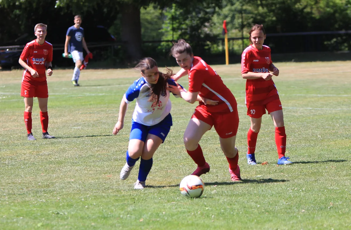 Die Frauen des FC Einheit Bad Berka sind Kreismeister und steigen in die Verbandsliga auf. In der Spitzenbegegnung des letzten Spieltages beim 1. FFC Saalfeld reichte der Mannschaft von Trainerin Jeannine Rothe ein 1:1-Unentschieden. Die Gastgeberinnen gingen vor mehr als 120 Zuschauern nach 12. Minuten durch Melissa Maak in Führung - ein Ergebnis, dass den Saalfelderinnen zum Meistertitel gereicht hätte. Doch die Kurstädterinnen kamen zurück und erzielten durch Luisa Golm (36.) noch vor der Pause den Ausgleich. Bis zum Spielende blieb es spannend. Bad Berka brachte am Ende das Ergebnis über die Zeit und sicherte sich ungeschlagen den Meistertitel. Luisa Golm wurde mit großem Abstand Torschützenkönigin.