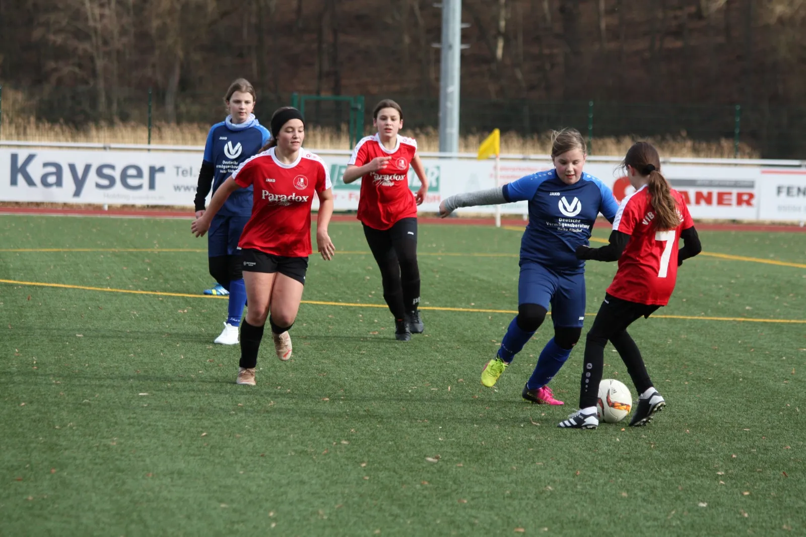 Noch ohne Freilufttraining präsentierten sich unsere Mädels sehr torhungrig und einsatzfreudig. Und gleich in der 1. Minute zappelte der Ball im gegnerischen Netz. Nach schöner Vorarbeit von Mathilda über die linke Seite konnte Nele das Leder über die Linie drücken. Mit diesem Schwung ging es munter durch die erste Halbzeit und wir erspielten uns eine vielzahl an Torchancen, die zum Glück auch genutzt wurden. Sophia erhöhte in der 9. Minute auf 2:0, ehe sich Mathilda (12., 21., 28.) + Nele (14., 22.) abwechselten und das Ergebnis bis zur Halbzeit auf 7:0 erhöhten.
