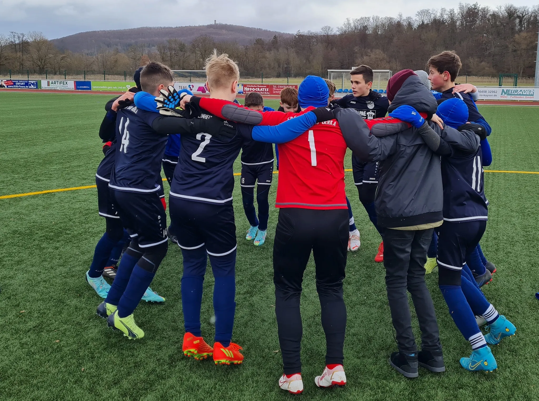 Das letzte Spiel der Hinrunde konnten unsere C2-Junioren erfolgreich gestalten. Trotz einer klaren Überlegenheit über die gesamte Spielzeit bedurfte es aber einer Leistungssteigerung in der zweiten Halbzeit. Lange hielten die Jungs vom Schlossberg sowohl körperlich als auch kämpferisch sehr gut dagegen, konnten allerdings aber auch so gut wie keine eigenen Chancen kreieren. Unseren Jungs merkte man die lange, intensive Hallensaison, wie auch schon in den Trainingseinheiten während der Woche, sehr stark an. Der Rhythmus stimmte noch nicht und wir fanden kaum, wie gewohnt, in unser Spiel. Außerdem mussten wir auch noch auf drei Stammspieler verzichten, was sich am Mittwoch noch nicht angedeutet hatte. Schön, dass Lenny und Vincent in die Bresche springen konnten.