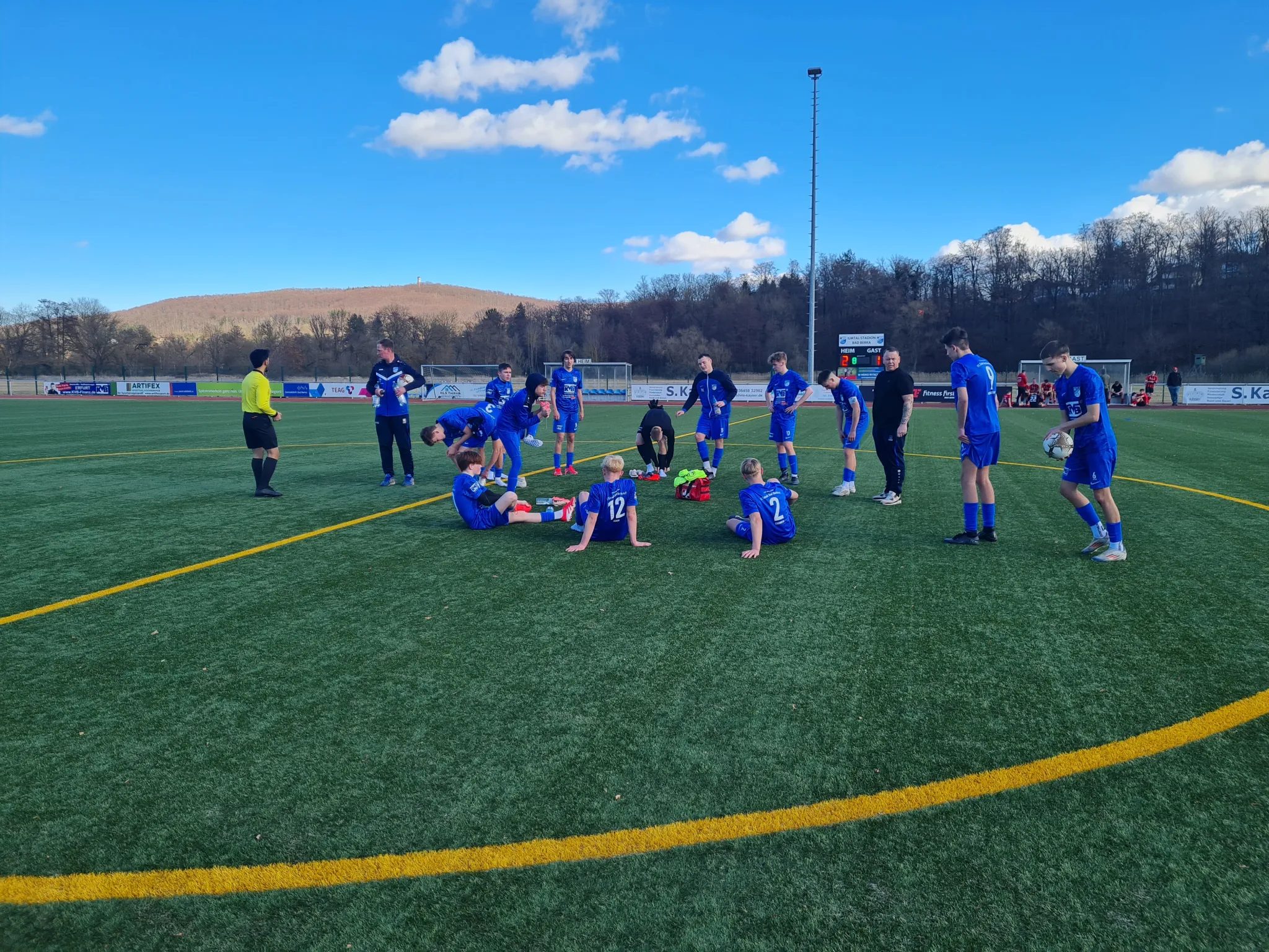 Nach der langen Hallensaison endlich wieder ein Wettkampf, ein Freundschaftsspiel, auf dem Großfeld. Gegner heute die A-Junioren der SG TSV 1864 Magdala. Dieses Team duelliert sich heuer mit unseren A-Junioren in der Kreisoberliga. Das in diesen Jahrgängen altersmäßig ebenfalls verhältnismäßig sehr junge Team belegt direkt hinter unseren Jungs dort derzeit einen hervorragenden 3. Platz.