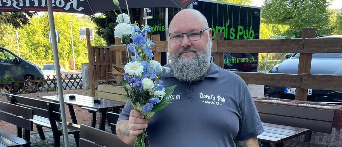 Fans des FC Einheit Bad Berka, Spieler der ersten und zweiten Männermannschaft und Mitglieder des Vorstands haben Martin Dornberger zum zehnjährigen Bestehen seines Lokals "Dorni's Pub" gratuliert. "Dorni", wie ihn alle nennen, ist seit vielen Jahren Edelfan des FC Einheit und Sponsor. Seine Sportsbar gilt als inoffizielle Vereinskneipe. Sein Teams gewann zuletzt das Städteturnier in Bad Berka und konnte im gleichen Jahr ein ähnliches Turnier in Blankenhain gewinnen. Der Verein wünscht Dorni und seinem Team weiterhin alles Gute.