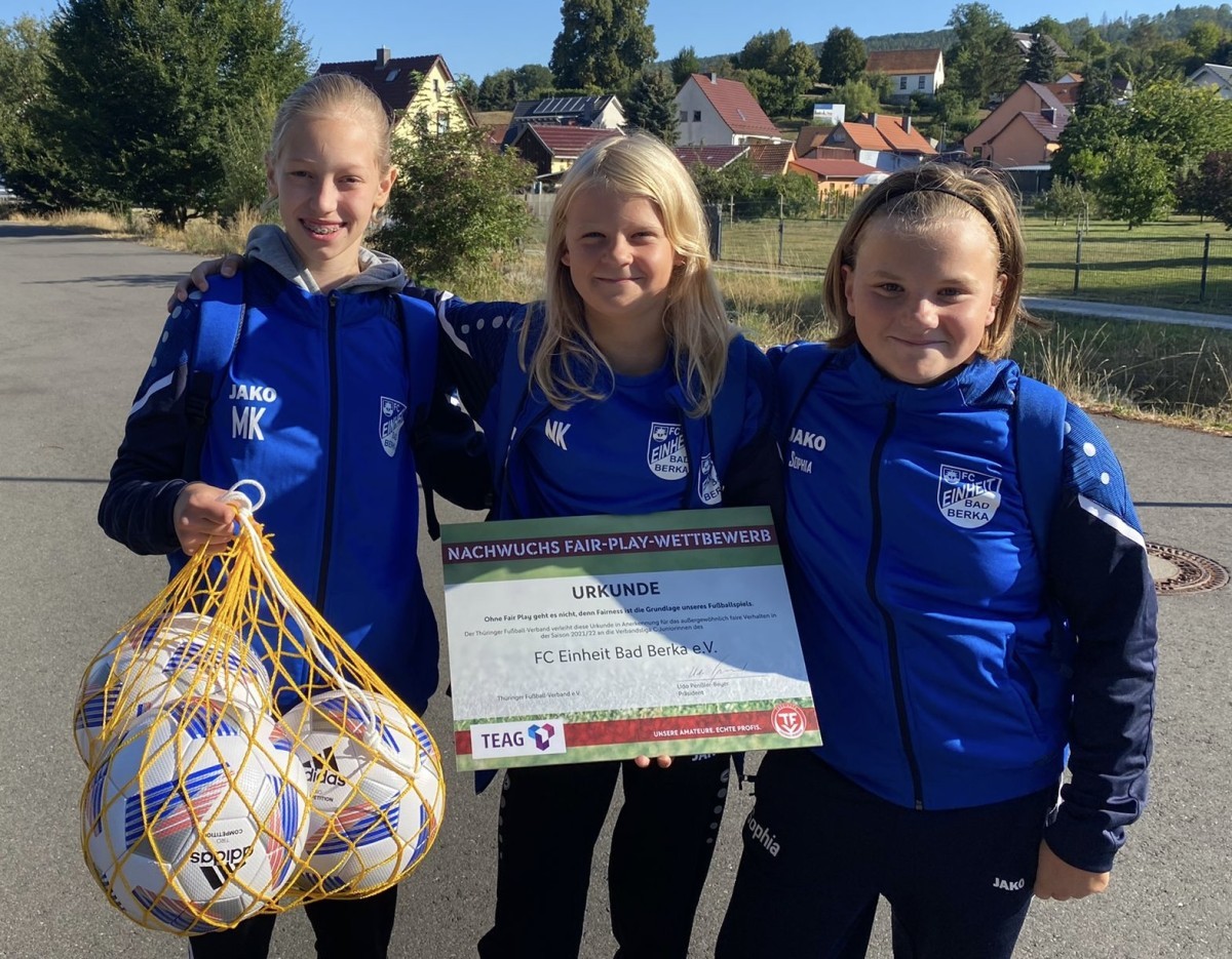 Die Ehrung wurde während der TFV-Staffeltagung der Frauen- und Mädchenmannschaften am Freitag in Bad Berka vorgenommen. Die Mädels können sich über eine Geldprämie und ein Ballpaket freuen.
