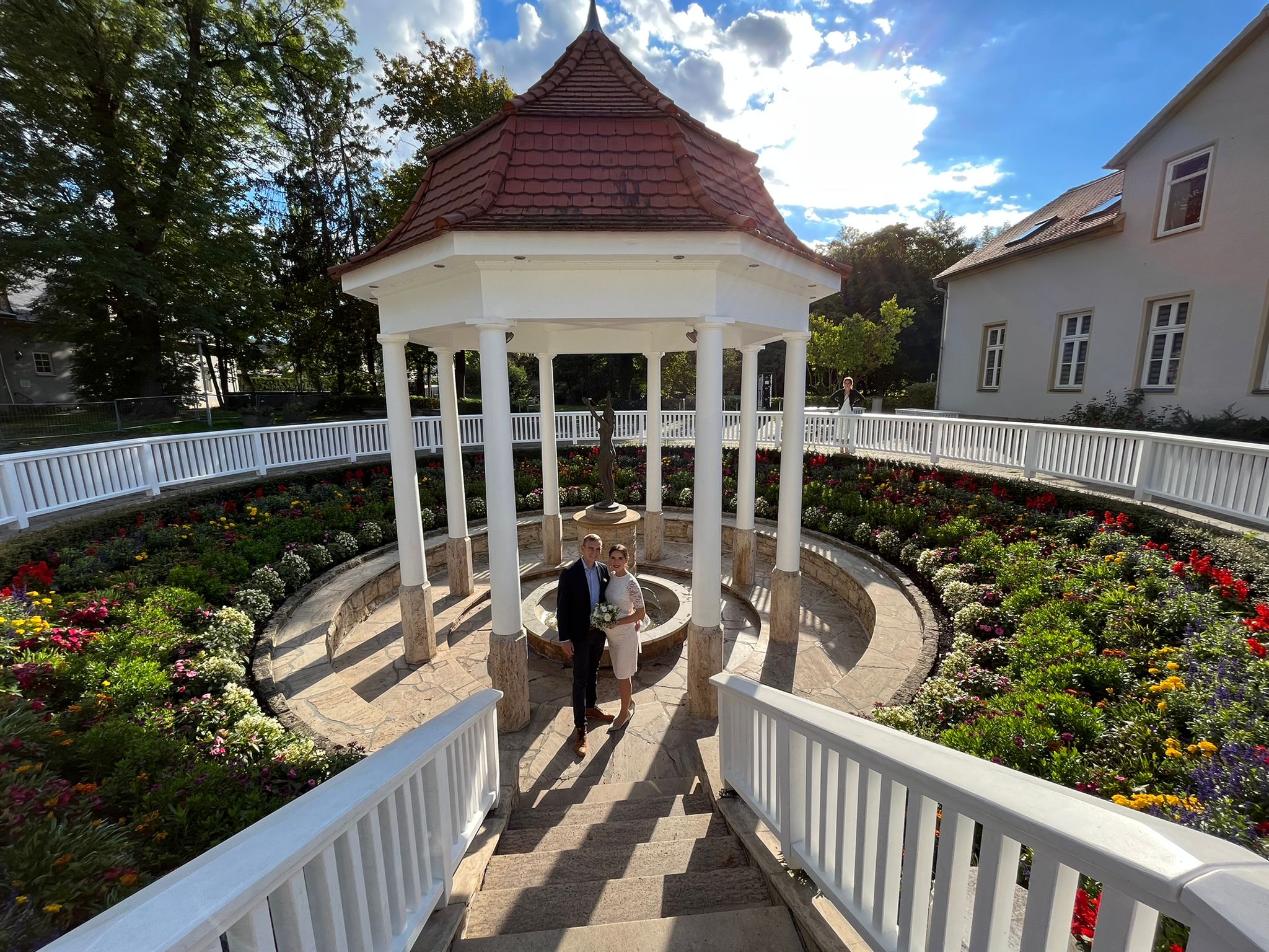Am Weltkindertag hat er erfolgreich den Titel mit Dorni's Pub beim Städteturnier verteidigt: Zwei Tage später macht Martin Menger, Spieler der Kreisoberliga-Mannschaft des FC Einheit Bad Berka, erneut eine gute Figur. Vor dem Standesamt gibt er sein Ja-Wort und lässt sich anschließend am Goethebrunnen in Bad Berka ablichten. Seine Angetraute - Sarah Loreen - hört künftig auch auf den Namen Menger. Der FC Einheit wünscht dem jungen Ehepaar alles Gute für den gemeinsamen Lebensweg.