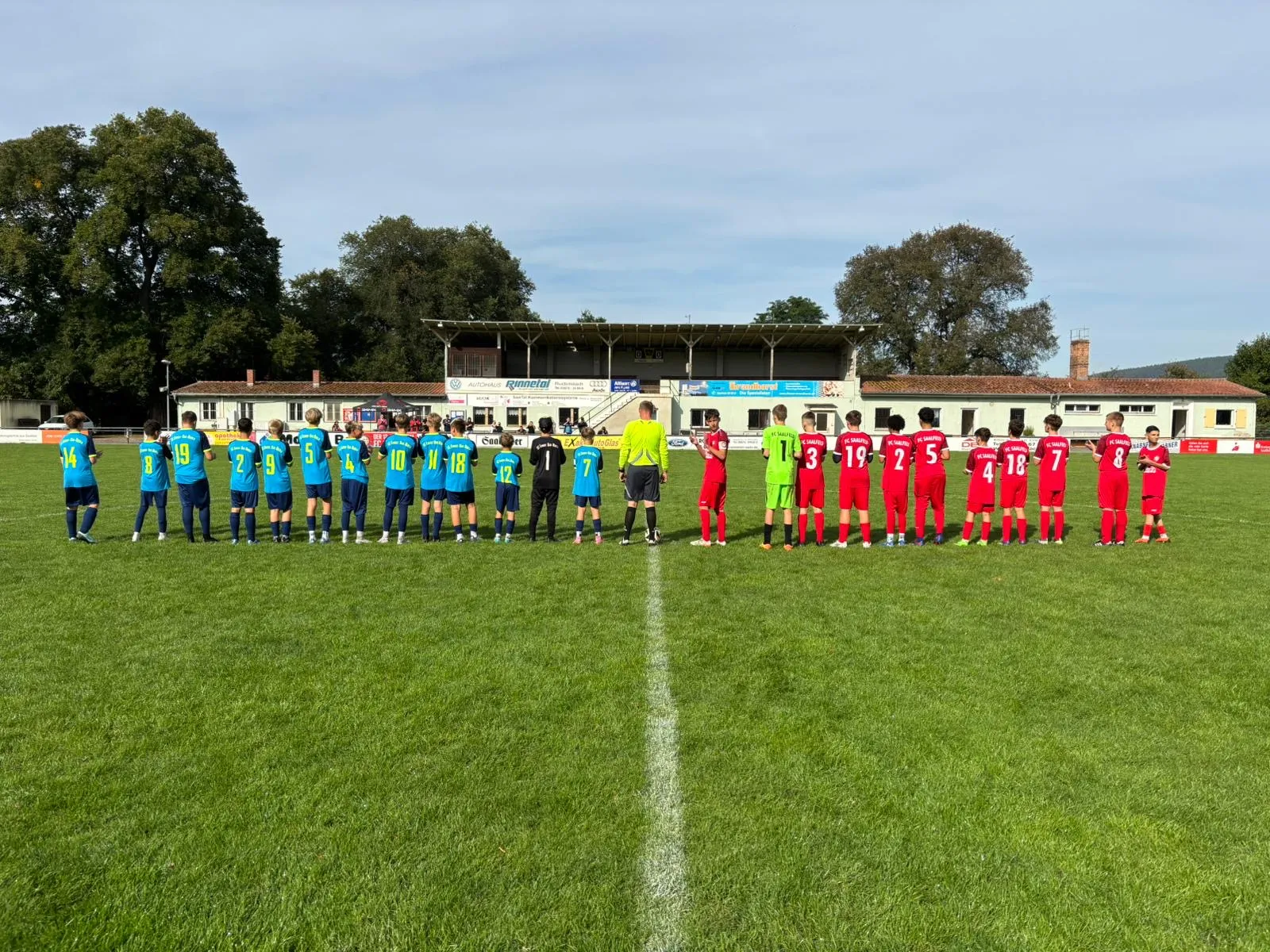 Mit sieben Spielern des älteren Jahrgangs in der Startelf war Saalfeld keine typische „zweite Mannschaft“ – körperlich wie auch tabellarisch lagen Welten zwischen beiden Teams. Der Anpfiff ertönte und kaum war die Trainerbank angewärmt, stand es nach sieben Minuten bereits 2:0 gegen uns (4., 7.). Beide Male legten wir den Torschützen den Ball am Ende sogar selbst auf. Rumms.